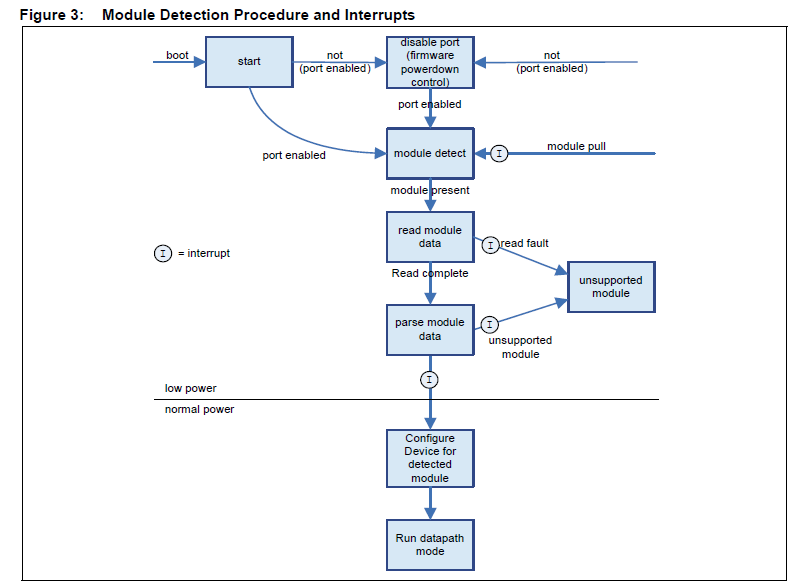LASI中断被用来指明光模块由于插入或者拔出导致的状态变化。这些中断在forced mode和self-configure mode下都能够使用。