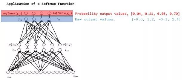 相反,Softmax函数的输出值相互关联,其概率的总和始终为1,如图0.04 + 0.21 + 0.05 + 0.70 = 1.00。因此,在Softmax函数中,为增大某一类别的概率,其他类别的概率必须相应减少。