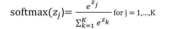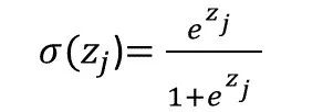在该公式中,σ表示Sigmoid函数,σ(zj)表示将Sigmoid函数应用于数字Zj。 “Zj”表示单个原始输出值,如-0.5。 j表示当前运算的输出值。如果有四个原始输出值,则j = 1,2,3或4。在前面的例子中,原始输出值为[-0.5,1.2,-0.1,2.4],则Z1 = -0.5,Z2 = 1.2,Z3 = -0.1,Z4 = 2.4。
