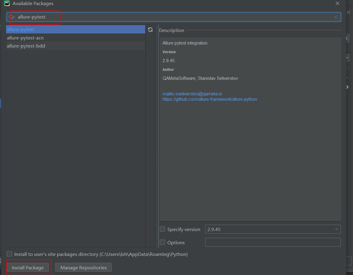 PyCharm中import allure提示No module named allure