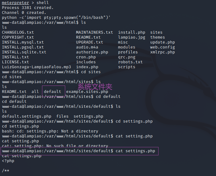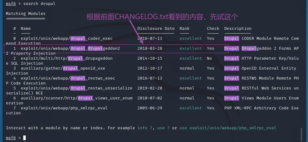 (7)drupal内容管理系统(cms),中间件,这是一个drupal搭建的网站,可能含有某些漏洞(免身份认证的RCE漏洞),使用kali自带工具msf,msf利用drupal的rce漏洞反弹shell:
