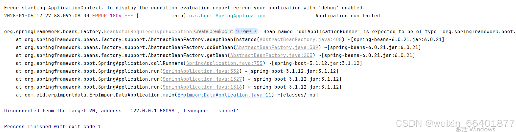 最近在使用SpringBoot3集成MybatisPlus时出现如下错误:Bean named 'ddlApplicationRunner' is expected to be of type 'org.springframework.boot.Runner' but was actually of type 'org.springframework.beans.factory.support.NullBean'