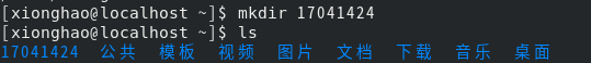 (2) 在用户主目录(家目录)下面创建一个以自己学号命名的目录并查看是否创建成功