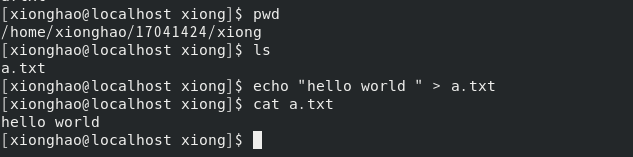 (3) 进入以自己学号命名的目录,查看当前目录,然后创建以自己姓名拼音命名的目录
