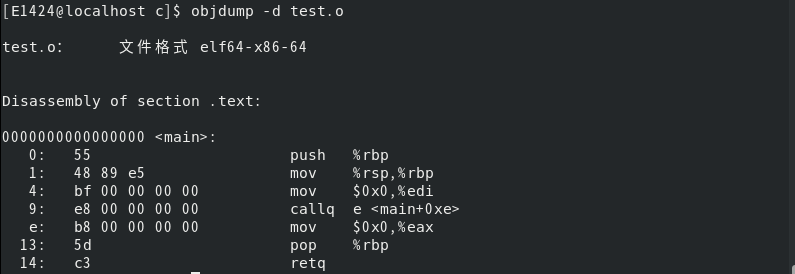 通过objdump命令反汇编该文件,查看汇编代码如下:
