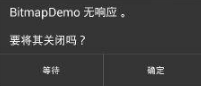 下图就是我们见到的APP无响应的时候出现的对话框,产生ANR的原因很多,但是只有在Activty中的Anr才会弹出对话框,对话框有两个选项,一个是等待,一个是关闭程序供用户选择: