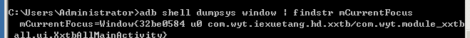 adb shell dumpsys window | findstr mCurrentFocus //该命令为WIn环境