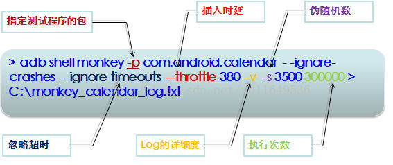 -v:打印log级别,-v越多日志信息越详细,最多支持3个。例如:adb shell monkey -p 包名 -v -v -v 事件总数-v 日志详细程度