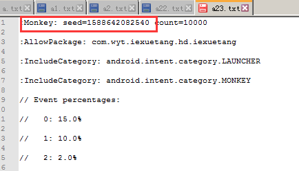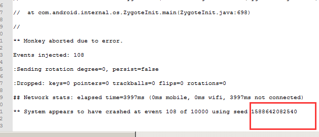 当开发修复该crash后,回归测试验证是否修复成功,测试人员需要使用上一次跑的monkey测试中的seed值做回归测试。