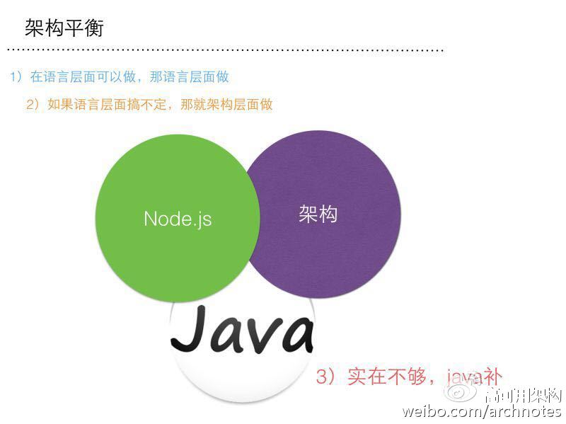 合适的场景用合适的东西。有很多东西是 Node.js 不擅长,又不在架构范畴里的,咋办?如实在不够,Java 补(严格点,应该叫其他语言补)