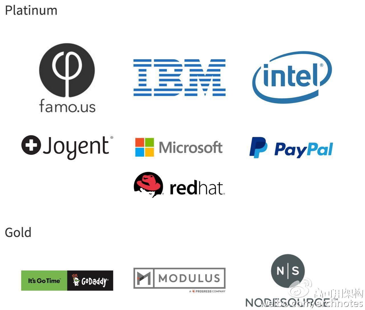 Node.js 基金会的创始成员包括 Joyent、IBM、Paypal、微软、Fidelity 和 Linux 基金会。