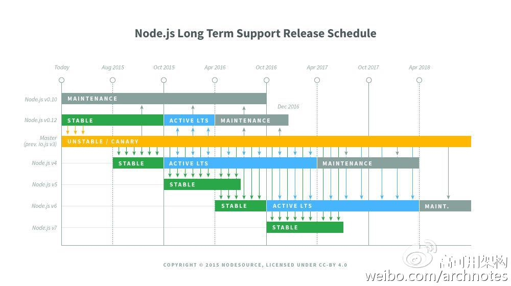 - 2015 年 10 月 Node.js v4.2.0 将是首个 LTS 长期支持版本