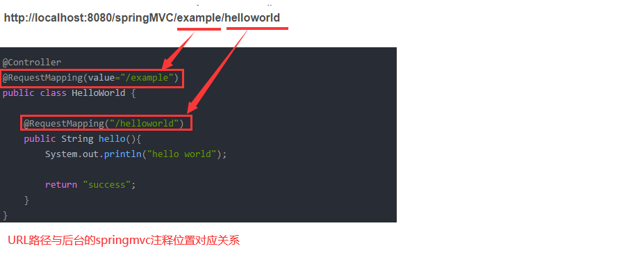 前端根据@RequestMapping注释给出的名字进行指定访问。