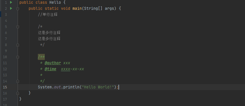 - 文档注释:用来生成帮助文档,可带参数,是一个特殊的多行注释