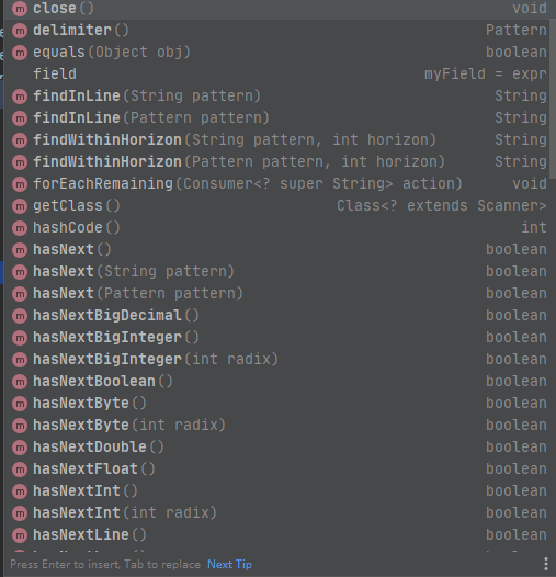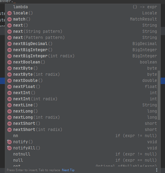 - 对输入有效字符之前遇到的空白,next()方法会自动将其去掉。