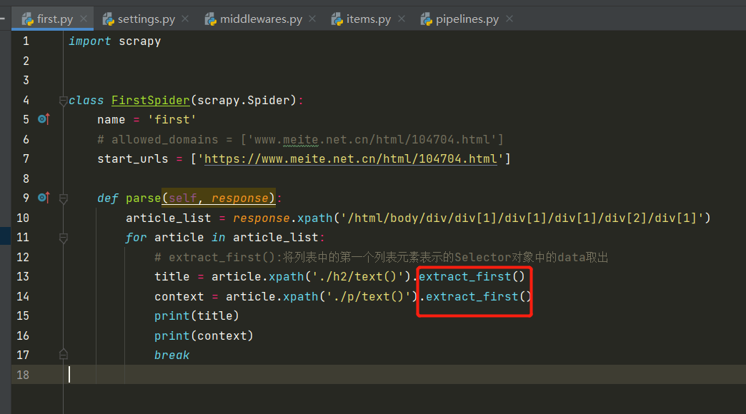 -scrapy中的xpath直接将定位到的标签中存储的值或者属性值取出,返回的Selector对象数据值是存储在Selector对象的data属性,需要调用extract、extract_first()取出