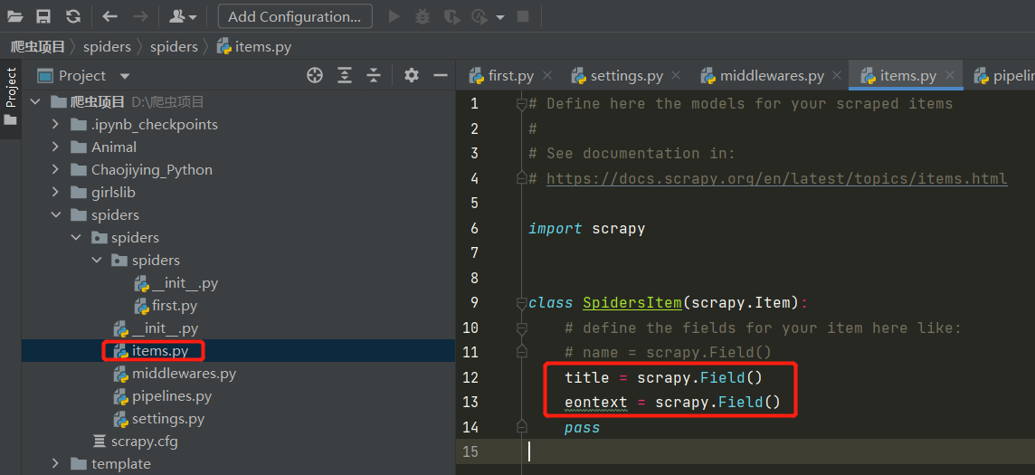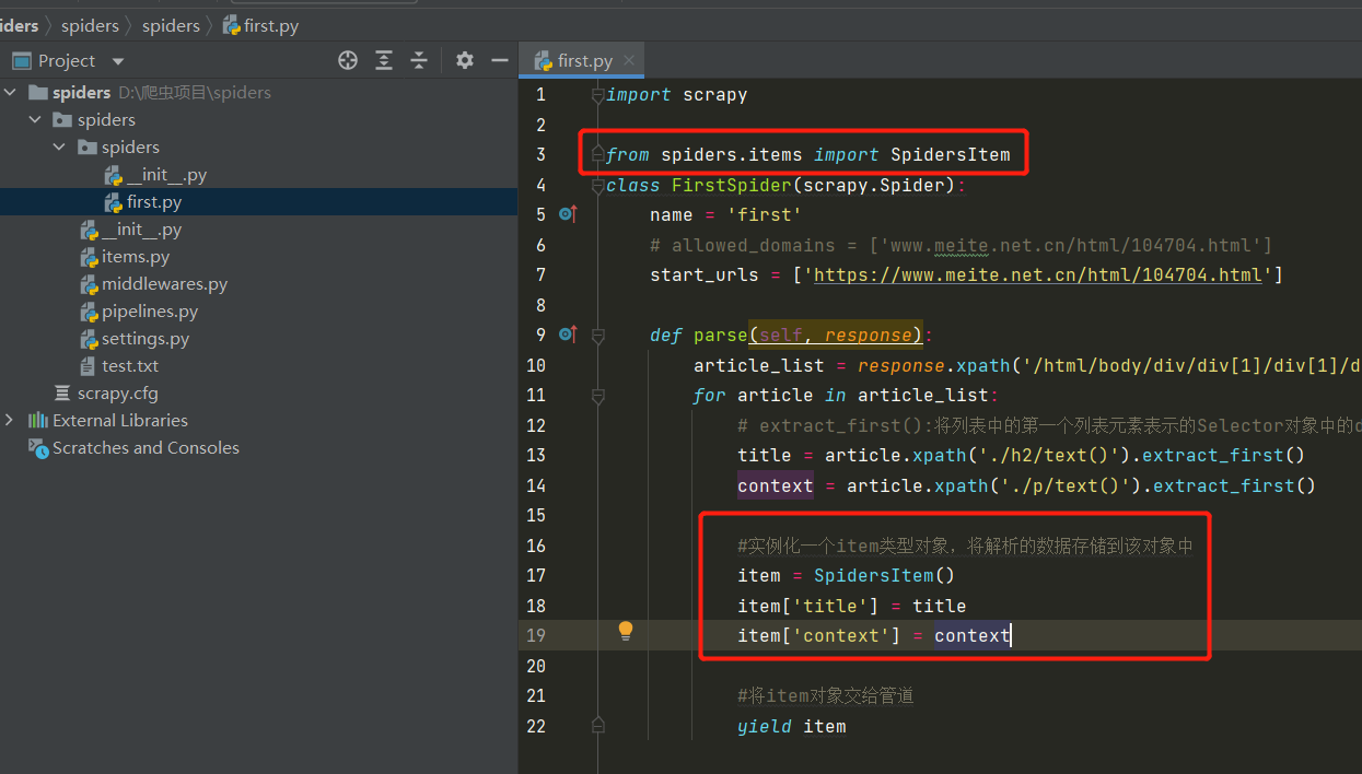 -在爬虫文件中将解析到的数据存储封装到Item类型的对象中