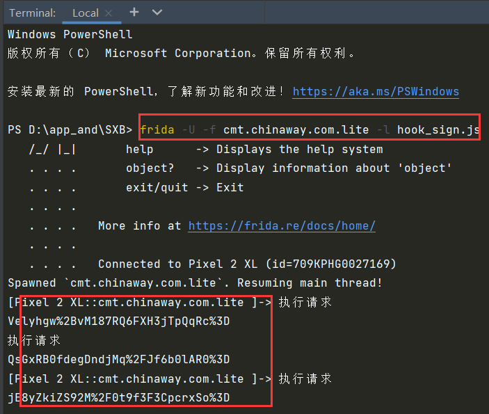 执行:frida -U -f cmt.chinaway.com.lite -l hook_sign.js