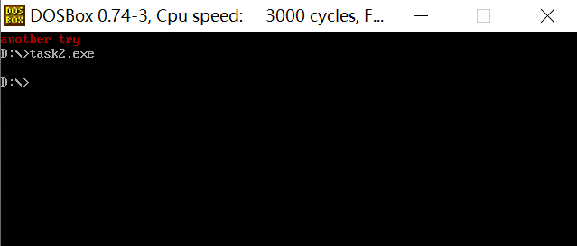 1 assume cs:code, ds:data 2 data segment 3 str db 'another try', 0 ;定义以0结尾的字符串try 4 data ends 5 6 code segment 7 start: 8 mov ax, data 9 mov ds, ax 10 11 mov si, offset str ;offset操作符取得了str的偏移地址0 12 mov al, 4 13 call printStr ;跳转指令,跳转到printStr处执行 14 15 mov ah, 4ch 16 int 21h 17 18 printStr: 19 push bx ;将寄存器压入栈,子程序中可能会用到这些寄存器 20 push cx 21 push si 22 push di 23 24 mov bx, 0b800H 25 mov es, bx 26 mov di, 0 27 s: mov cl, [si] 28 mov ch, 0 29 jcxz over ;cx为0时,指令跳转到over处执行 30 mov ch, al 31 mov es:[di], cx 32 inc si 33 add di, 2 34 jmp s 35 36 over: pop di ;将寄存器出栈,恢复寄存器原先的值 37 pop si 38 pop cx 39 pop bx 40 ret 41 42 code ends 43 end start