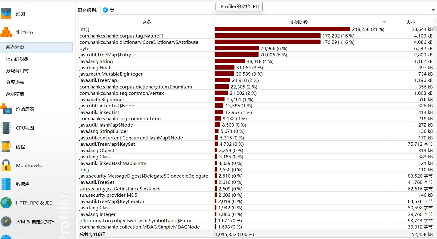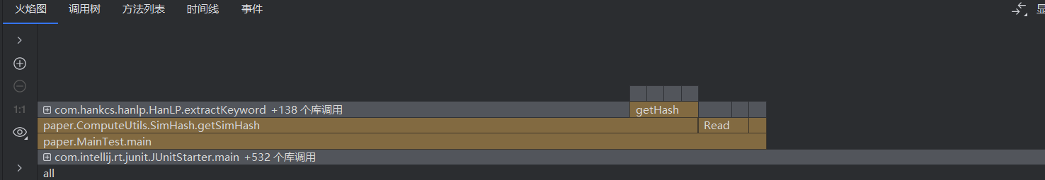 可知,getSimHash函数是占据的CPU时间和内存空间都是最大的,是消耗最大的方法。