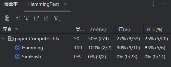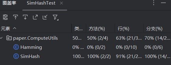 通过自定义SimHash值来计算海明距离和相似度,与预期结果进行匹配