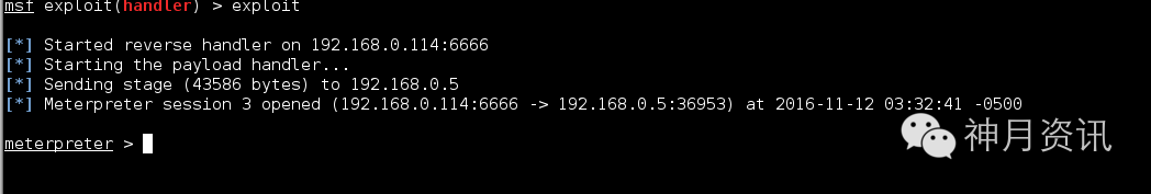 在新版用blueman发送没成,然后用了旧版kali下的bluetooth-sendto进行发送,好了,就等他点击了,即可获得meterpreter ~