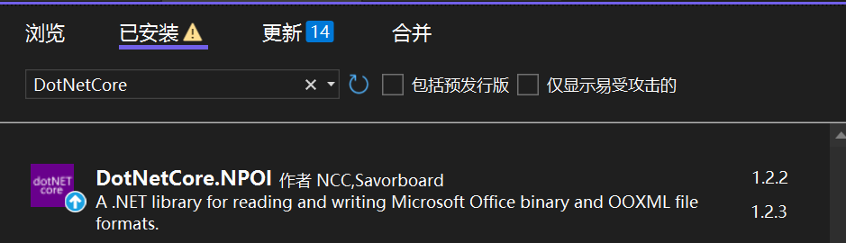 1.首先下载DotNetCore.NPOI包,版本根据自己的项目进行对应