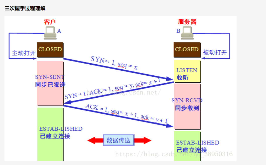 第三次握手:(客户端向服务端伸手)最后这次不会继续发送请求建立连接的讯号了,只有个确认的信号。