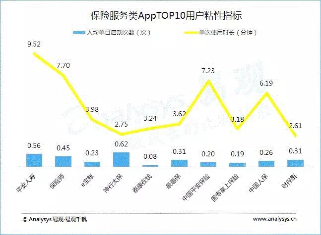 在榜单中,作为互联网保险公司的代表众安保险相比上月位次有所提升,以19.8万人的月度活跃用户规模排行第13。人均单日启动次数最高的是神行太保,达到了0.62次。而平安人寿的单次使用时长指标最高,达到了9.52分钟。