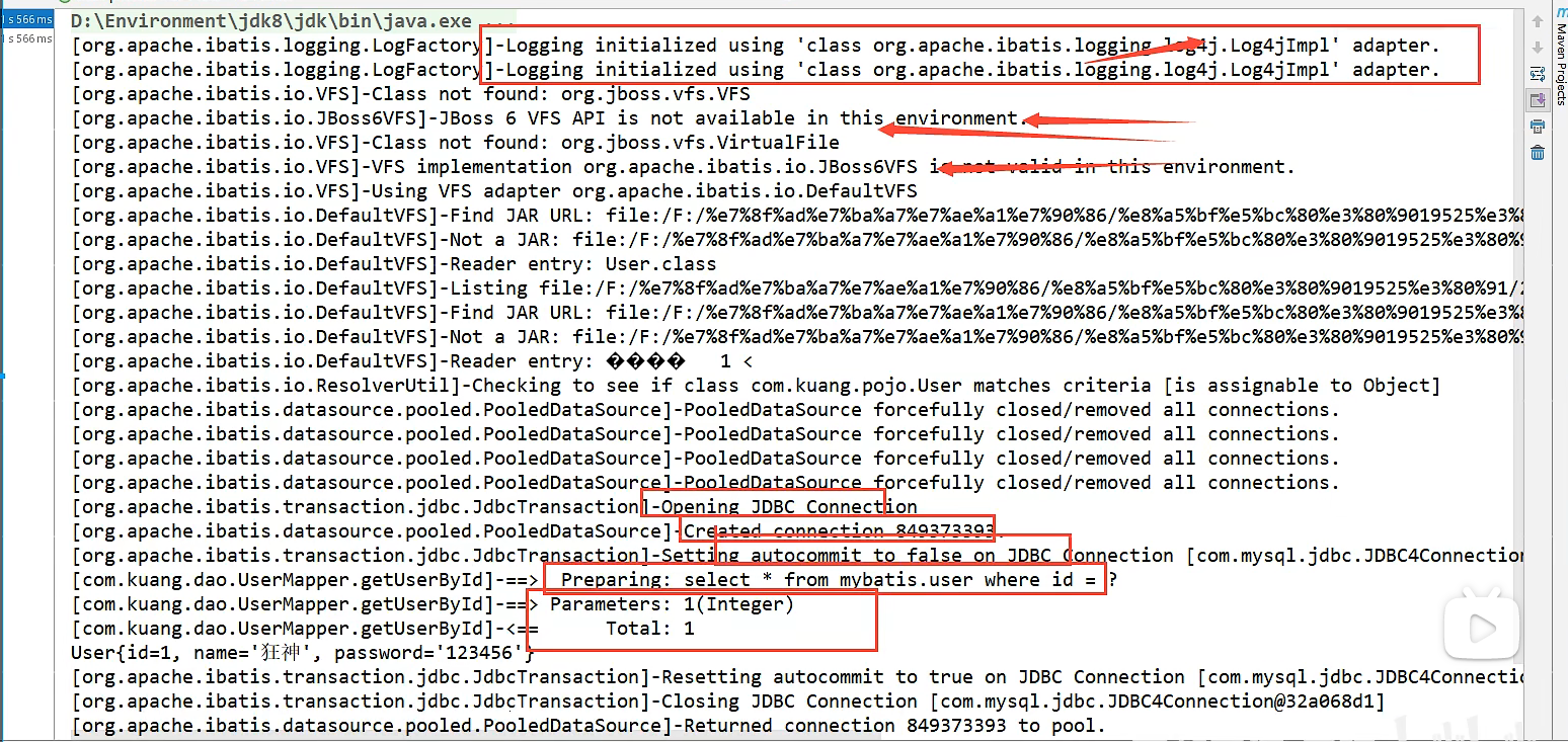 public void test(){ //第一步:获取sqlSession对象 SqlSession sqlSession = MyBatis_utils.getSqlSession(); //第二步:获取类 //通过反射实现getMapper UserMapper mapper = sqlSession.getMapper(UserMapper.class); List<User> userList = mapper.getUserList(); for (User user : userList) { System.out.println(user); } //关闭连接 sqlSession.close(); } public void getUserByID(){ SqlSession sqlSession = MyBatis_utils.getSqlSession(); UserMapper mapper = sqlSession.getMapper(UserMapper.class); User userByID = mapper.getUserByID(1); System.out.println(userByID); sqlSession.close(); }