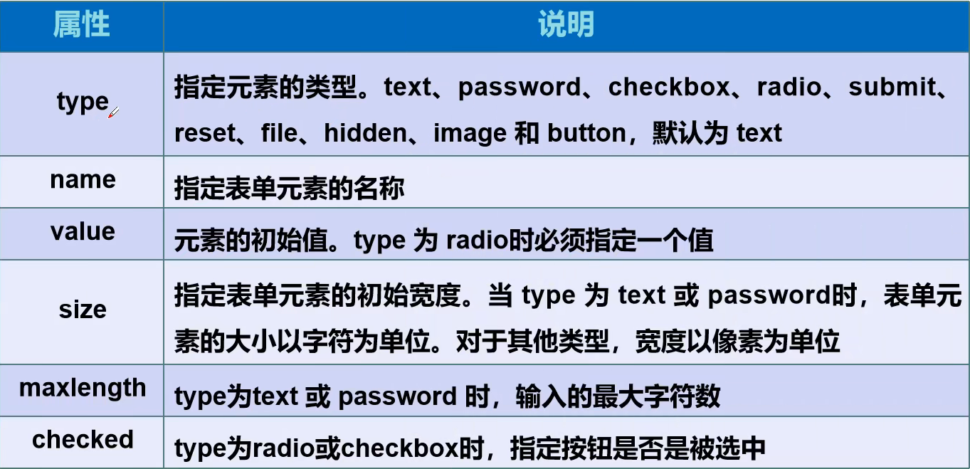 readonly只读 hidden隐藏 disable禁用 placeholder提示信息(用在输入框控件上) required不能为空