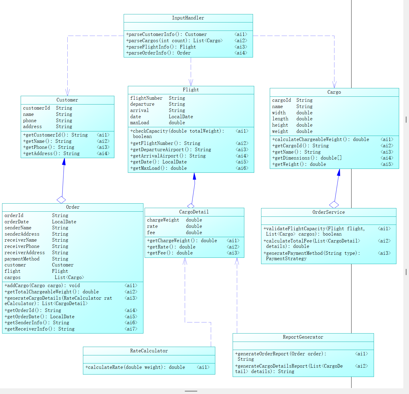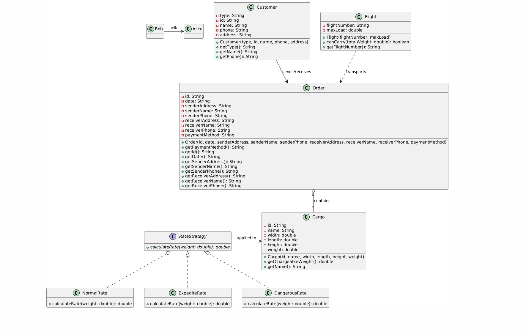 第二次航空货运管理系统作业是在第一次作业类设计基础上的迭代开发,技术实现新增继承与多态应用场景。因第一次作业已采用接口实现费率计算功能,实际已隐性应用多态特性,两次作业在核心设计思想上具有较强延续性,具体迭代工作量相对有限。
