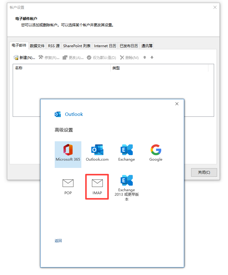 3、到这里选择自己邮箱协议,我用的是IMAP协议,
