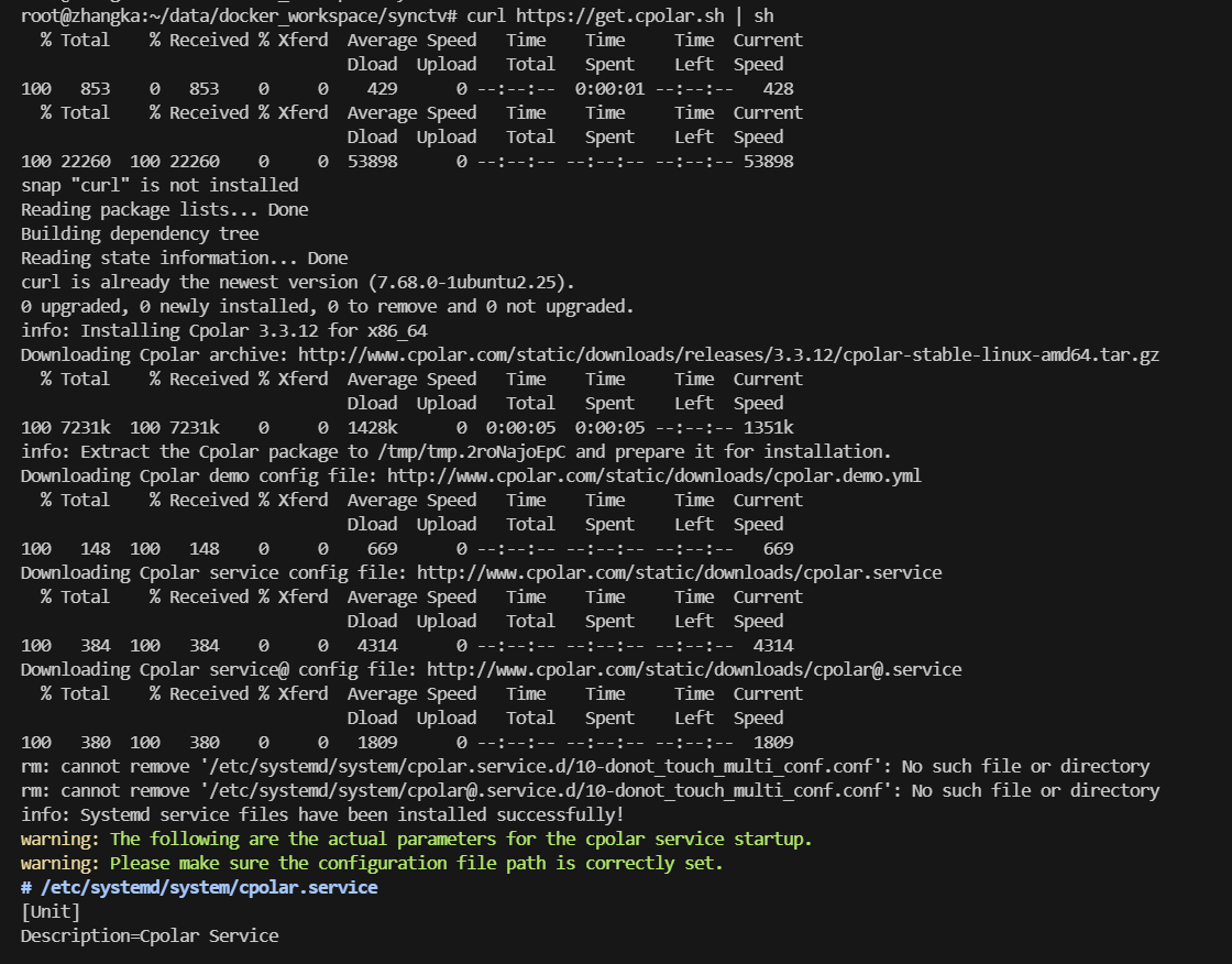 sudo curl https://get.cpolar.sh | sh #安装cpolar内网穿透
