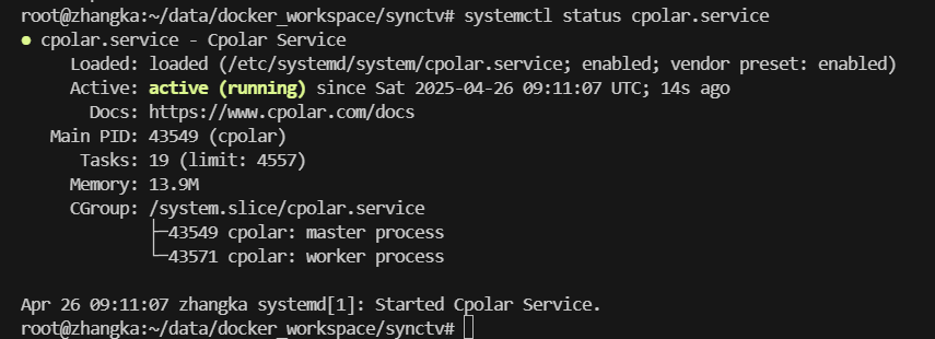 9、检查cpolar运行状态,sudo systemctl status cpolar