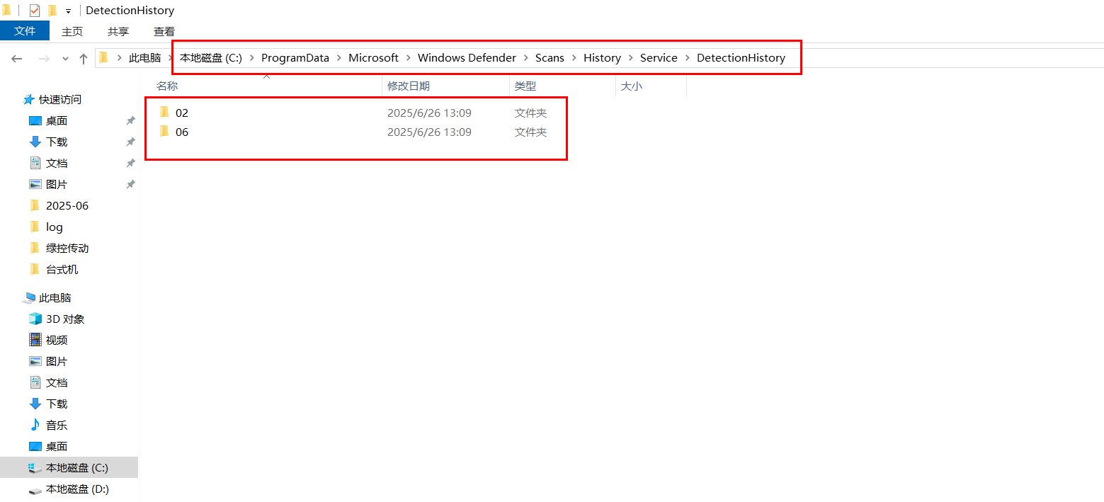 删除Windows Defender保护历史记录,定位到以下目录(如提示无权限访问,请移步到PE下进行删除操作),删除 DetectionHistory 目录下所有内容,重启计算机即可