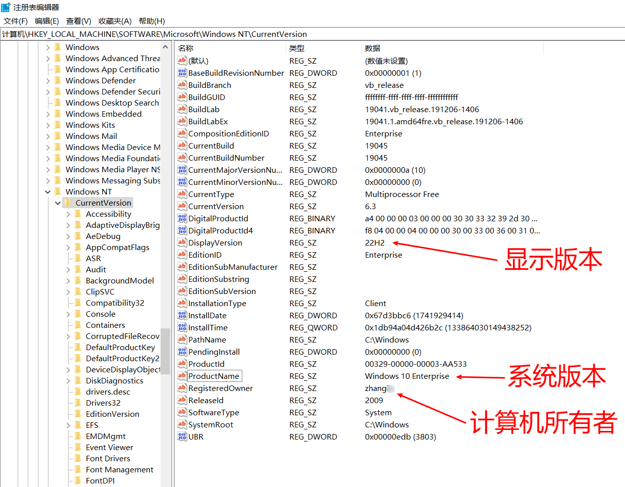 打开注册表,定位到 计算机\HKEY_LOCAL_MACHINE\SOFTWARE\Microsoft\Windows NT\CurrentVersion