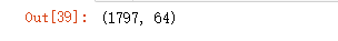 X.shape //这个数据集是简化的数据集,所以并没有5620个数据,有1797个数据 每个数据有64个属性,是一个8x8的矩阵