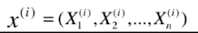 表示第 i 个样本的第一个属性、第2个属性……第n个属性值组成的向量。