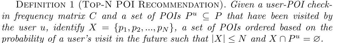 即X是用户u未来可能访问的POI的集合,X的数量是≤用户u曾经访问过的POI的数量的,且用户u未来可能去的POI不是该用户曾经访问过的POI中的。