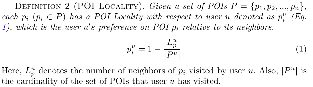 在推荐方法中,数据稀疏是一个很大的问题。对于POI推荐来说,面对巨量的POI,每个用户访问过的POI是极其有限的。本文通过将地理影响建模为重要的上下文信息,在所提出的方法中解决了稀疏问题的。