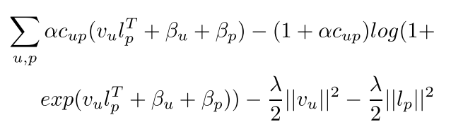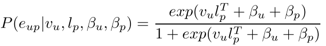 个人感觉这一步需要一些item-based的知识积累:通常,基于 MF 的推荐的目标是找到两个低秩矩阵,包括用户因素矩阵 V ∈ Rmxk 和项目因素矩阵 L ∈ Rmxk,其中 k 是潜在因素的数量,使得内部 这两个矩阵的乘积近似矩阵Cˆ,即 Cˆ = V × LT。 V (vu ∈ V) 的每一行代表用户行为的用户向量,L (lp ∈ L) 的每一行代表物品属性的行为。