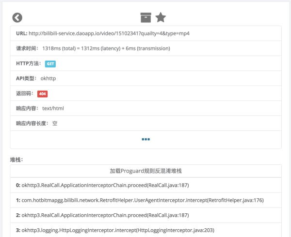 对于4xx的返回码(如下图),Appetizer会给出完整的请求URL(包括请求参数),以及请求Header(见折叠),通常这类情况是由于构造的的URL有问题,例如参数问题,或者是一些字符串转码方面的问题。Appetizer 1.2.0推出后,报告页面右上角会多一个按钮,用于导出这个问题请求的cURL 命令行,可以轻松导入postman进行进一步测试