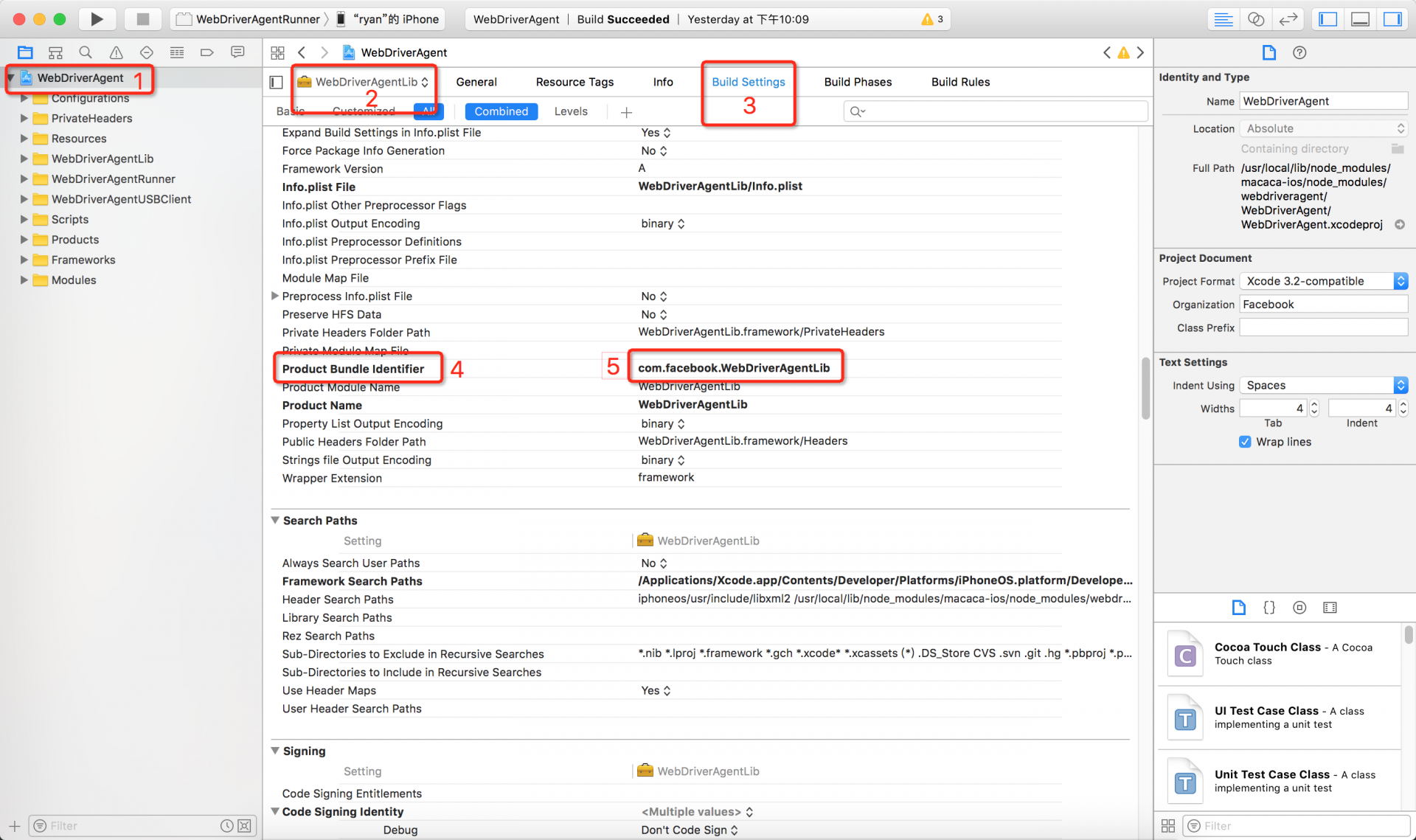 如果是免费版的个人证书,还需要修改下WebDriverAgent的BundleID,随便加点后缀,只要不跟其他人的重名就好 (这里参考了macaca的一篇文章 https://testerhome.com/topics/8085 )