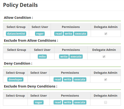 我们先来看最简单的,对于用户的访问控制,我们可以设置用户对于选定的路径有哪些权限,策略细节如下: