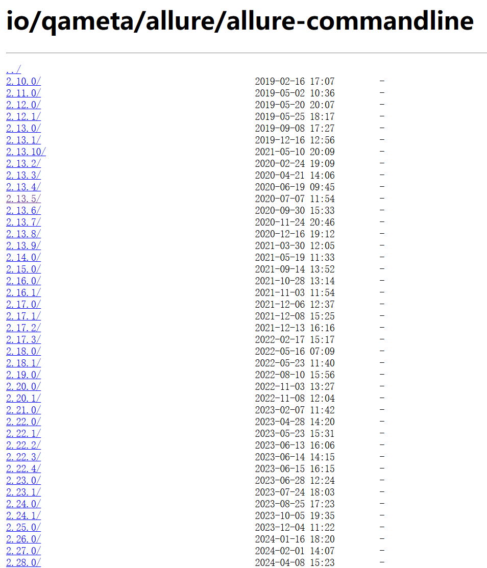 访问此链接:https://repo.maven.apache.org/maven2/io/qameta/allure/allure-commandline/