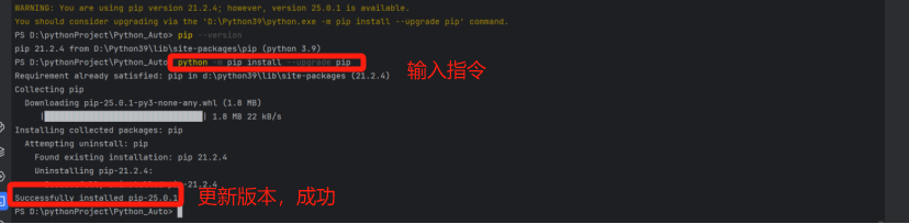 WARNING:You are using pip version 21.2.4; howere 25.0.1 is available.