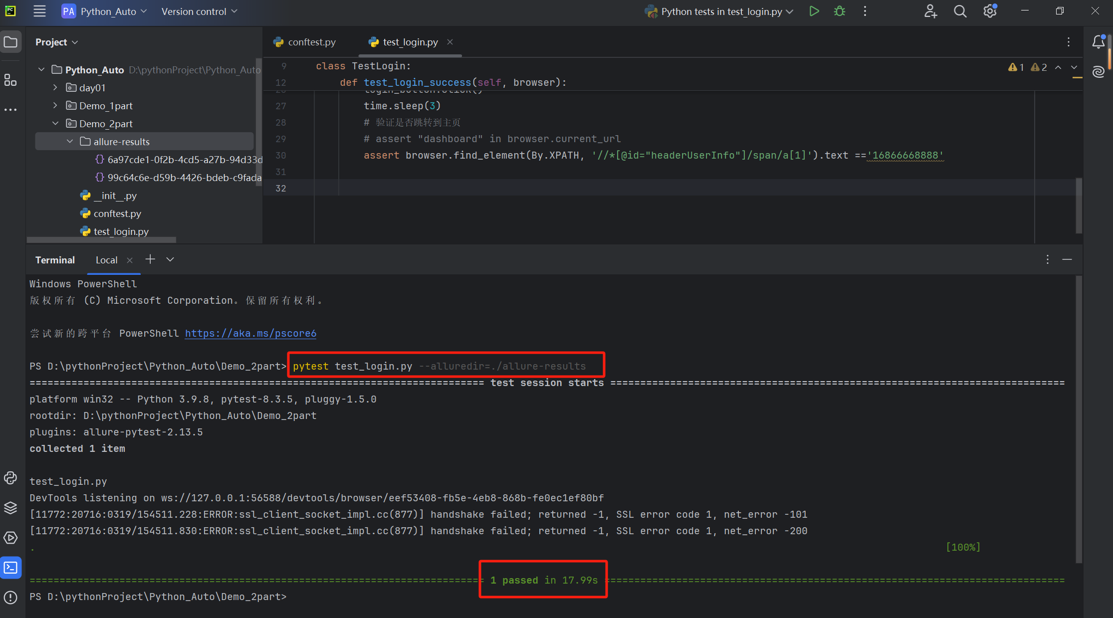 接下来咱们简单的以登录某个网站为例,实现生成allure报告。新建一个文件夹Demo_2part,里面新建2个python文件,命名为conftest和test_login