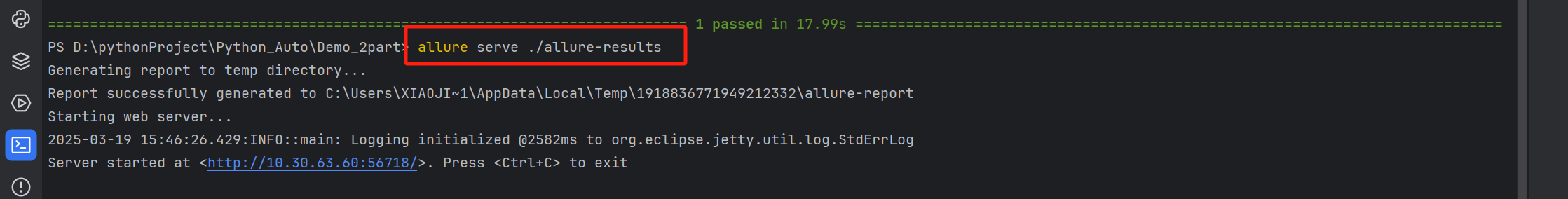 PS特别注意:allure环境变量配置完成以后,Windows窗口验证没问题,pycharm验证有问题,则重启pycharm重新验证即可。