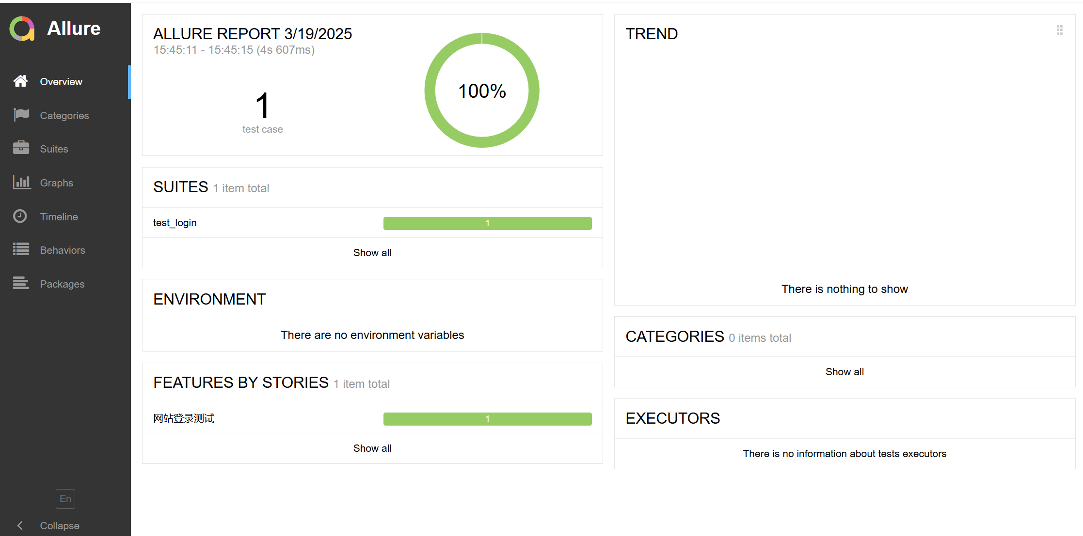 PyCharm 会自动启动本地 Web 服务并打开浏览器展示报告
